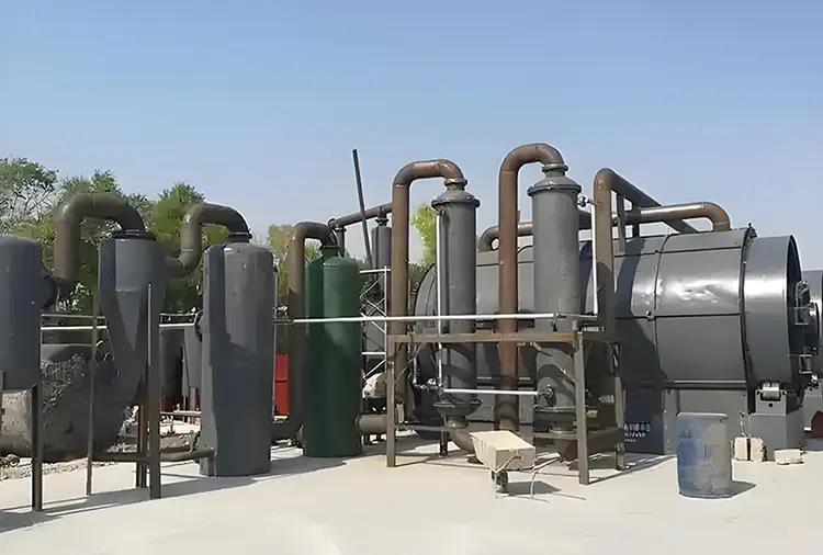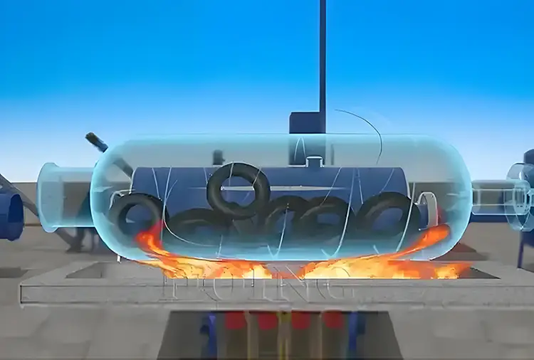 Процесс пиролиза : нагрев в кислороде с дефицитной средой (400-500 ° C) разлагается на резину в смеси масляного газа, которая конденсируется для производства масла; Стальная проволока и углеродные черные были переработаны путем физического разделения. Меры защиты окружающей среды :